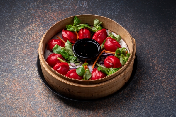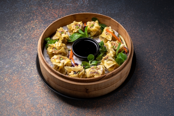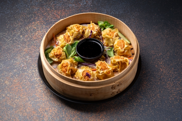 W każdej porcji 10 szt. - serwowane z sosem sojowym